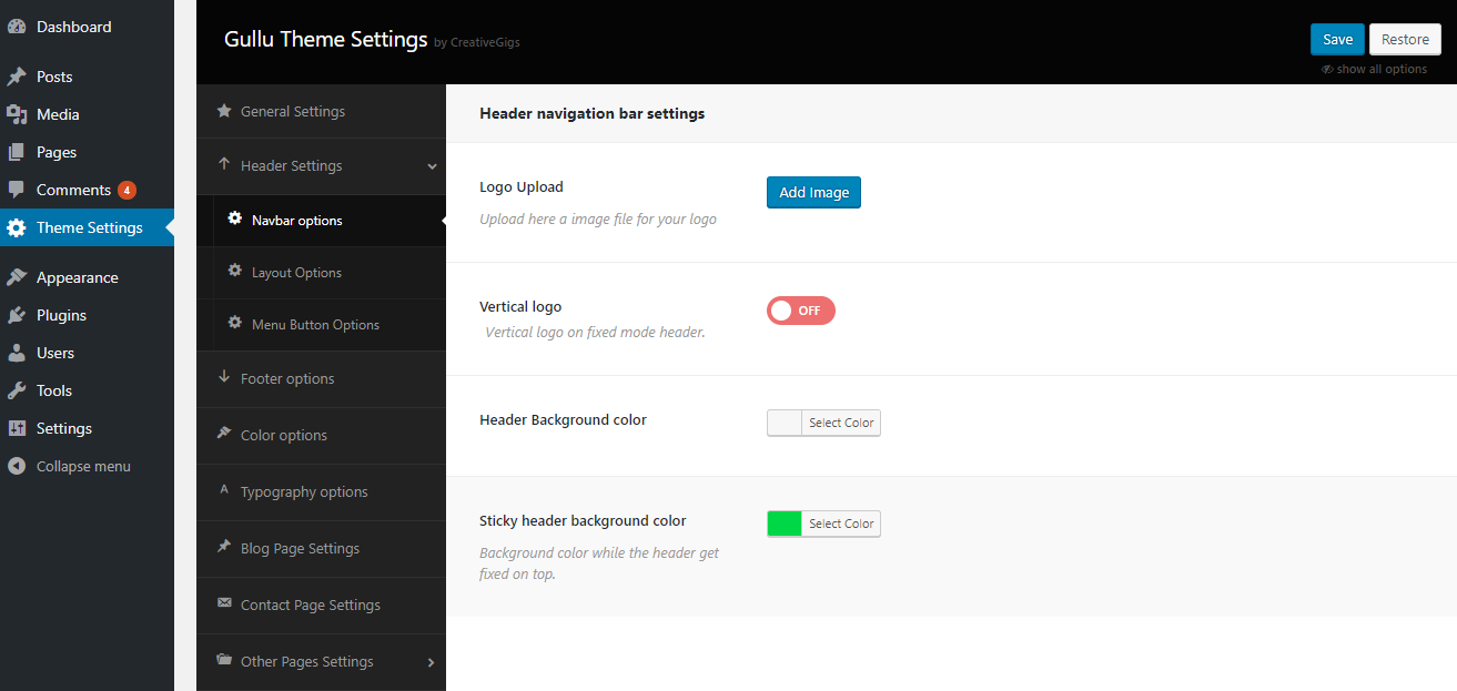Header Settings Estimated reading: 1 minute 729 views In the Header settings section, you will get a lot of header customization options. In this section, you can change the logo and set the menu button, navigation bar settings etc.